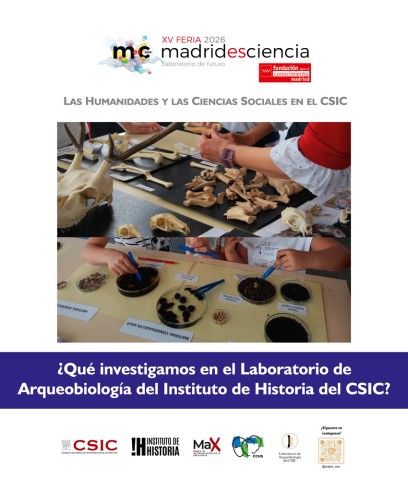 Ya por la tarde del jueves, estuvieron en el stand del CCHS un grupo del Laboratorio de Arqueobiología y el GI Paleoeconomía y Subsistencia de las Sociedades Preindustriales (PssP). Ellos investigan sobre las estrategias de subsistencia (agricultura y ganadería) y los procesos culturales en torno al uso de plantas y animales en el pasado. La arqueobotánica y la arqueozoología son las disciplinas que permiten reconstruir qué comían las personas, qué cultivos plantaban, qué animales criaban o cazaban y cómo se organizaba su economía. Las personas asistentes fueron: Leonor Peña, Elena López-Romero, Irene Vicente y Sara García, quienes llevaron a cabo la actividad: ¿Qué investigamos en el Laboratorio de Arqueobiología del Instituto de Historia del CSIC? Consistente en descubrir cómo se recuperan los macrorrestos vegetales y los huesos de animales en las excavaciones, cómo se analizan en el laboratorio y qué tipo de información proporcionan sobre la vida cotidiana de las sociedades del pasado. De este modo, se mostró cómo semillas, frutos, huesos y dientes pueden ayudarnos a comprender mejor la historia de la relación que las comunidades humanas mantuvieron con su entorno natural.