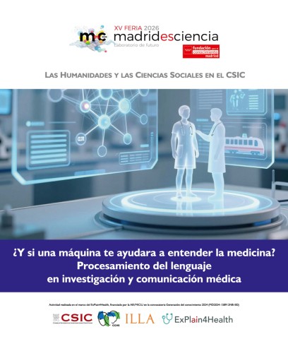 Por la tarde del viernes, Leonardo Campillos Llanos (ILLA CSIC), se mantuvo en el stand con la actividad: ¿Y si una máquina te ayudara a entender la medicina? Procesamiento del lenguaje en investigación y comunicación médica presentó tres sistemas de procesamiento del lenguaje en español. El primero era la herramienta CLARA-MeD, dónde presentó consentimientos informados, orientado a usuarios no expertos. El segundo, MEDSPANER, un reconocedor de conceptos médicos enfocado a la investigación o estudios clínicos por parte de profesionales sanitarios. En tercer lugar, mostró un prototipo de sistema conversacional que simula una interacción con un paciente virtual, diseñado para que los estudiantes de medicina aprendan a tomar la historia clínica y realizar diagnósticos en entornos simulados. Los asistentes podrán interactuar con los prototipos y aprenderán nociones básicas de cómo funcionan y cómo se desarrollan estas aplicaciones.