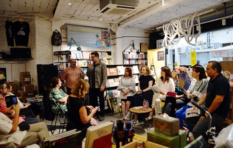 Turno de preguntas durante la presentación de Intrépidas. Entre Europa y las Américas: cultura, arte y política en equidad en librería Caótica (Sevilla) | Fotografía: Ed. Plaza y Valdés, 13-09-2022