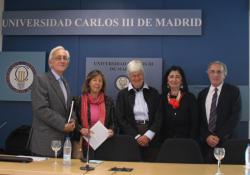 En la fotografía, de izquierda a derecha, Dr. Dimas Fernández Galiano (Instituto Nacional del Patrimonio), Dra. Guadalupe López Monteagudo (CSIC y Vicepresidenta de la AEEMA), Prof. Katherine Dunbabin (McMaster University Hamilton, Ontario-Canadá), Prof. Luz Neira (Universidad Carlos III de Madrid y Presidenta de la AEEMA), Prof. Antonio Rodríguez de las Heras (Director del Instituto de Cultura y Tecnología de la UC3M).